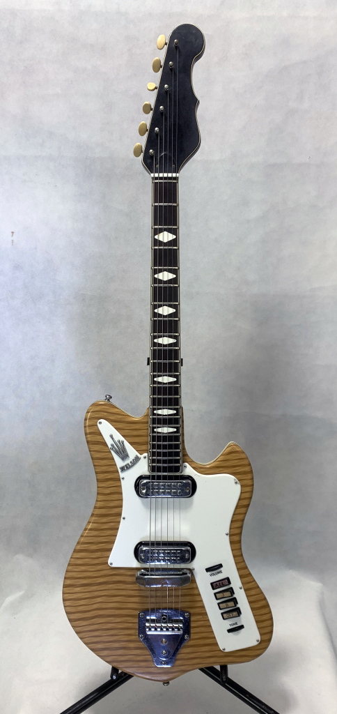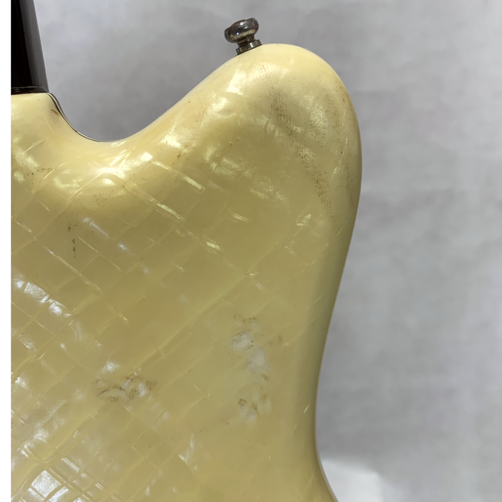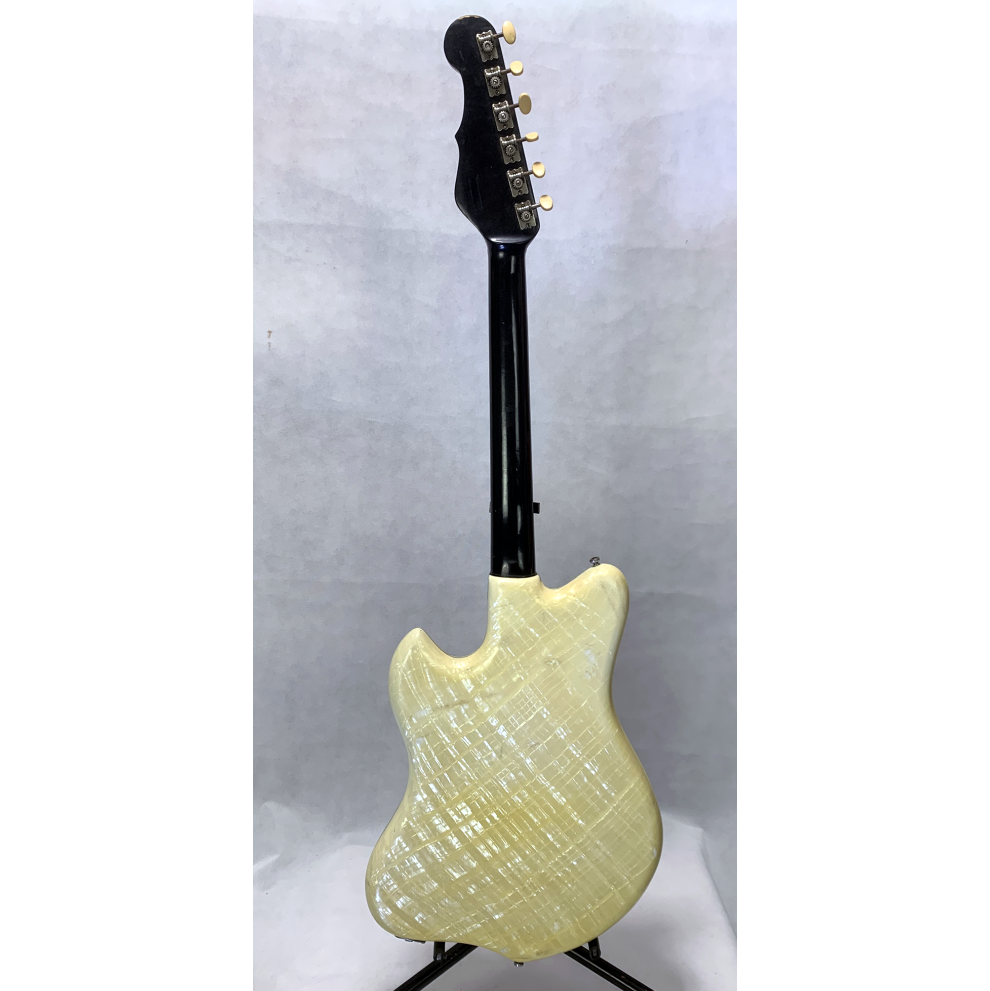 | Condition | Used - straight neck - crack in front vinyl & pickguard - repaired pickguard corner - non original button label - rough spots on headstock & bodyback perloid. |